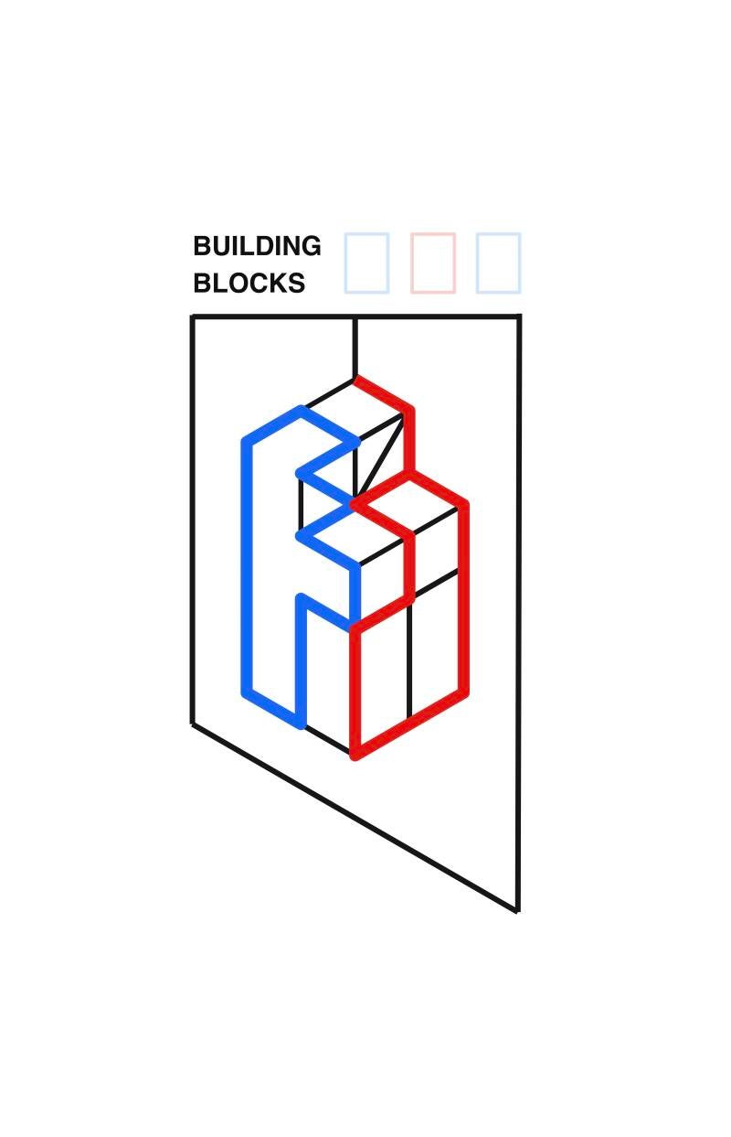 A logo design suited for a business card graphic of a home construction company. An isometric grid was used to draw up the logo to give a 3D design that would tie in with the business's purpose. The colours were chosen to convey a sense of action and purpose.